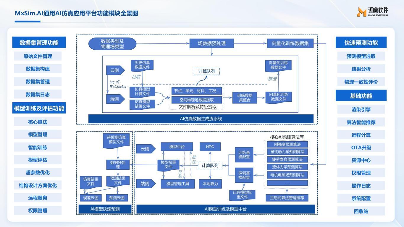 面对“十五五”规划中强调的智能化技术应用,迈曦软件早已布局。迈曦软件正积极推进AI与CAE深度融合,短期聚焦AI赋能仿真提效,长期以“AI智能体+大模型+仿真知识图谱”为核心,最终实现从“加速仿真”到“生成式设计+智能决策”的升级,逐步构建深度神经算子子网、AI 自动分析与异常智能诊断等能力,分阶段完成仿真知识图谱搭建、仿真专用大模型训练及生成式设计落地,最终打造通用AI智能仿真和设计开发平台MxSim.AI,实现AI智能体自主决策的“设计-仿真-优化-验证”闭环。